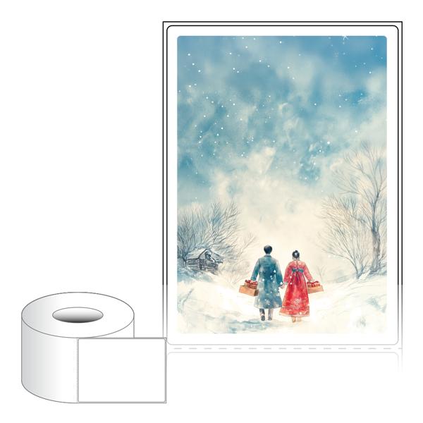 출력용 롤타입 스티커 디자인 라벨지, 규격코드: RL90124, 디자인코드: DA1520(설레는 맘을 담은 설날), 90 x 124 (mm) , 지관: 75mm