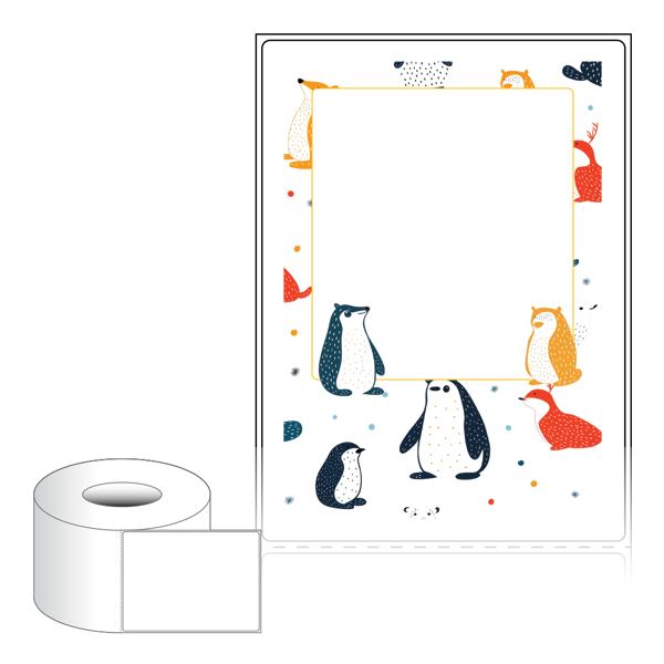 출력용 롤타입 스티커 디자인 라벨지, 규격코드: RL90124, 디자인코드: DA1564(겨울 숲 동물들의 메세지), 90 x 124 (mm) , 지관: 75mm