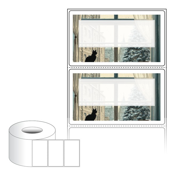 출력용 롤타입 스티커 디자인 라벨지, 규격코드: RL9052, 디자인코드: DA1494(오후엔 눈 그리고, 고양이), 90 x 52 (mm) , 지관: 75mm