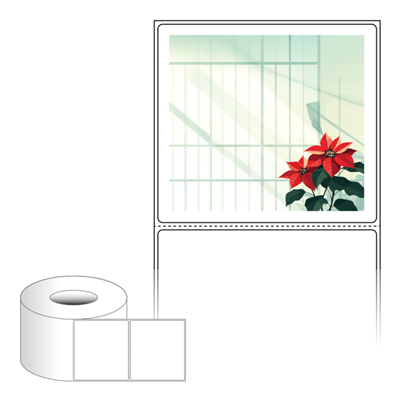 출력용 롤타입 스티커 디자인 라벨지, 규격코드: RL9082, 디자인코드: DA1477(포인세치아와 함께한 겨울), 90 x 81.667 (mm) , 지관: 75mm