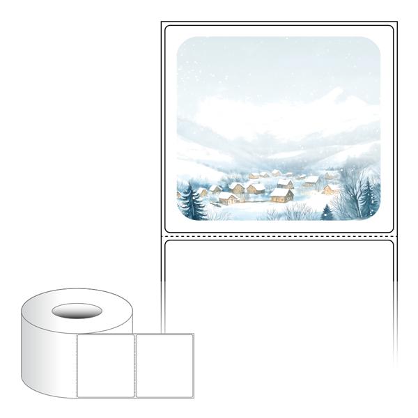 출력용 롤타입 스티커 디자인 라벨지, 규격코드: RL9082, 디자인코드: DA1541(고요한 한겨울의 풍경을 보내드려요), 90 x 81.667 (mm) , 지관: 75mm