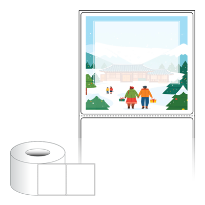 출력용 롤타입 스티커 디자인 라벨지, 규격코드: RL9082, 디자인코드: DA1569(설레는 설날의 아침), 90 x 81.667 (mm) , 지관: 75mm