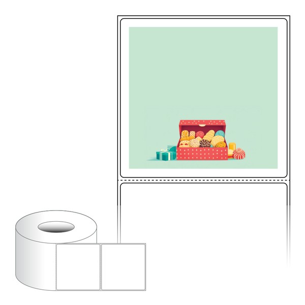 출력용 롤타입 스티커 디자인 라벨지, 규격코드: RL9086, 디자인코드: DA1478(크리스마스 아침에 선물을 받다.), 90 x 85.9 (mm) , 지관: 75mm