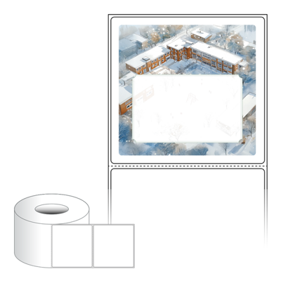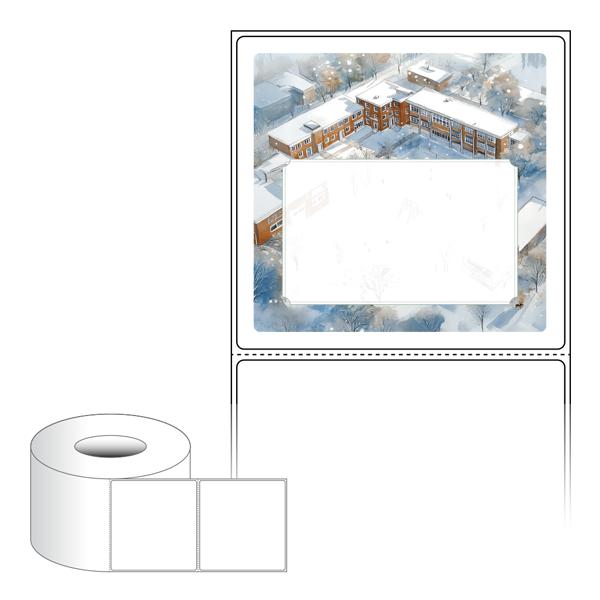 출력용 롤타입 스티커 디자인 라벨지, 규격코드: RL9086, 디자인코드: DA1535(겨울방학 학교에서 러브레터), 90 x 85.9 (mm) , 지관: 75mm