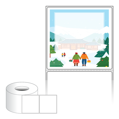 출력용 롤타입 스티커 디자인 라벨지, 규격코드: RL9086, 디자인코드: DA1569(설레는 설날의 아침), 90 x 85.9 (mm) , 지관: 75mm