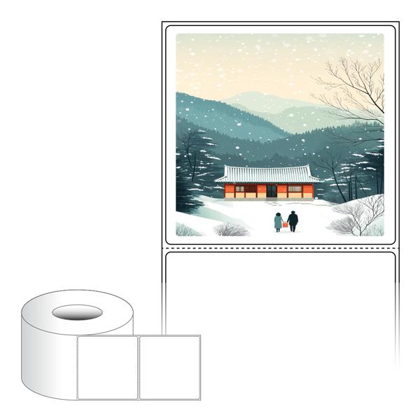 출력용 롤타입 스티커 디자인 라벨지, 규격코드: RL9086, 디자인코드: DA1577(귀향, 눈내리는 설날), 90 x 85.9 (mm) , 지관: 75mm