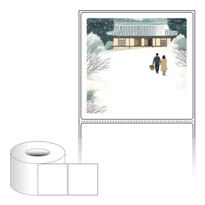 출력용 롤타입 스티커 디자인 라벨지, 규격코드: RL9086, 디자인코드: DA1580(눈내린 귀향의 따뜻한 길), 90 x 85.9 (mm) , 지관: 75mm
