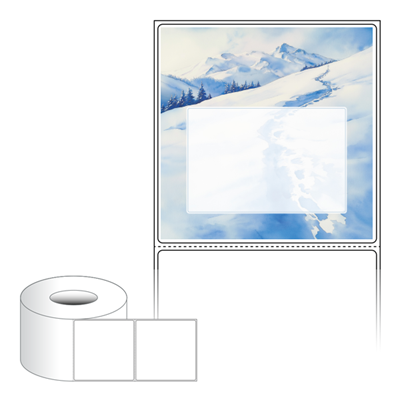 출력용 롤타입 스티커 디자인 라벨지, 규격코드: RL9090, 디자인코드: DA1490(겨울산에서 보내는 편지 1), 90 x 90.133 (mm) , 지관: 75mm