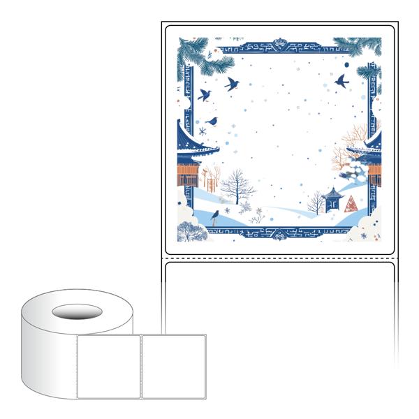 출력용 롤타입 스티커 디자인 라벨지, 규격코드: RL9090, 디자인코드: DA1514(겨울 프레임, 설날), 90 x 90.133 (mm) , 지관: 75mm