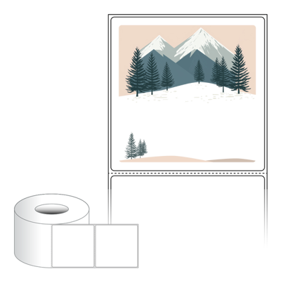 출력용 롤타입 스티커 디자인 라벨지, 규격코드: RL9090, 디자인코드: DA1582(저 잘지내요~ 겨울산에 인사), 90 x 90.133 (mm) , 지관: 75mm