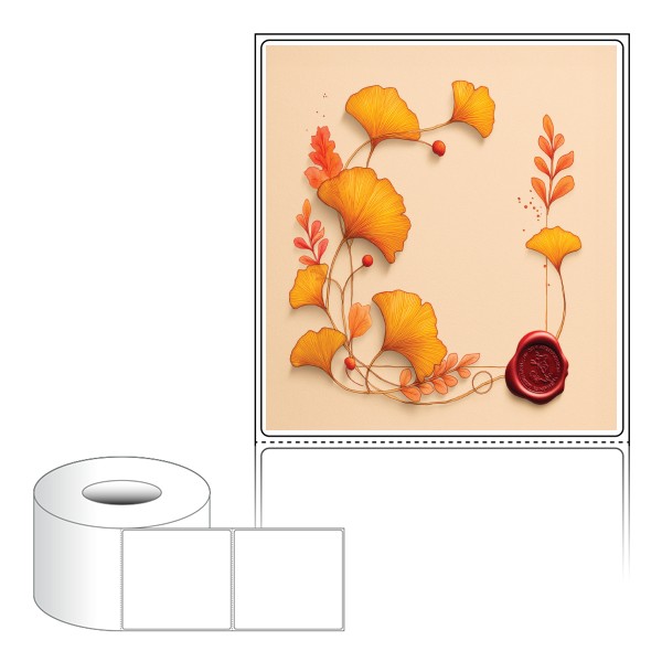 출력용 롤타입 스티커 디자인 라벨지, 규격코드: RL9099, 디자인코드: DA1437(은행잎 메모), 90 x 98.6 (mm) , 지관: 75mm