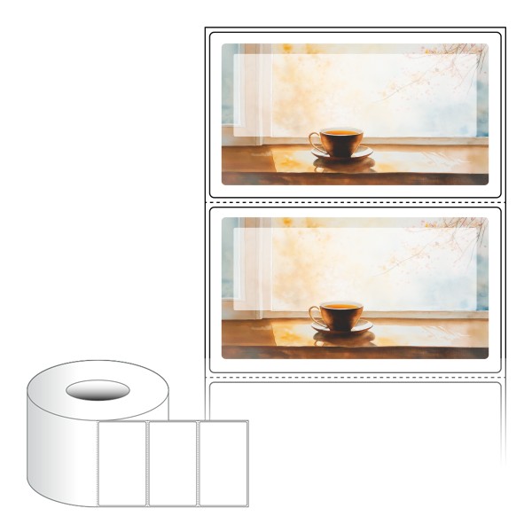 출력용 롤타입 스티커 디자인 라벨지, 규격코드: RL9554, 디자인코드: DA1425(가을날의 카페 창가에서), 95 x 54 (mm) , 지관: 75mm