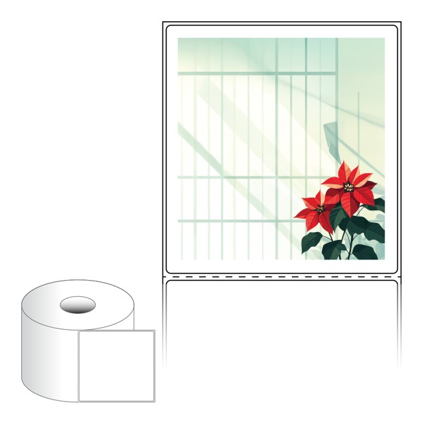 출력용 롤타입 스티커 디자인 라벨지, 규격코드: RS100107, 디자인코드: DA1477(포인세치아와 함께한 겨울), 100 x 107.067 (mm) , 지관: 40mm