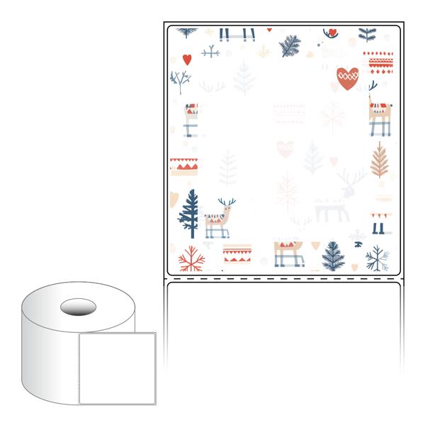 출력용 롤타입 스티커 디자인 라벨지, 규격코드: RS100107, 디자인코드: DA1526(겨울숲 여행 함께해요), 100 x 107.067 (mm) , 지관: 40mm