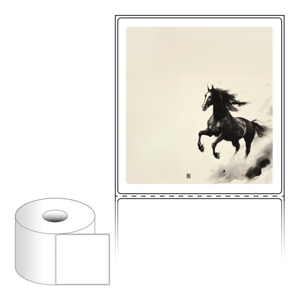 출력용 롤타입 스티커 디자인 라벨지, 규격코드: RS100107, 디자인코드: DA1570(함께 달리는 희망찬 새해), 100 x 107.067 (mm) , 지관: 40mm