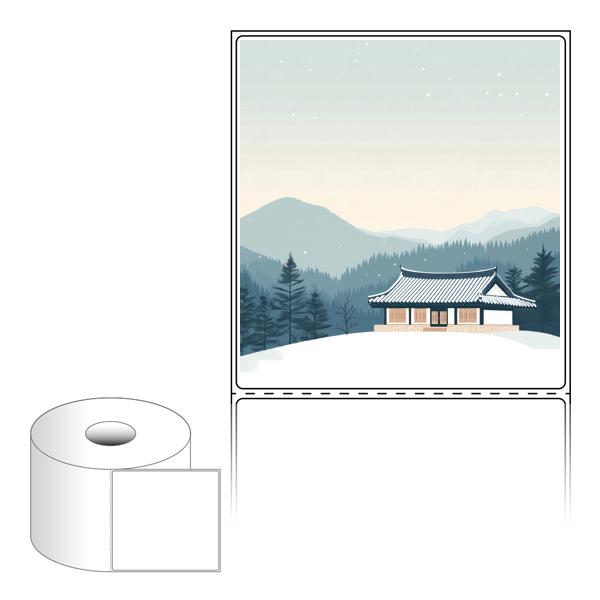출력용 롤타입 스티커 디자인 라벨지, 규격코드: RS100107, 디자인코드: DA1576(고요한 마음과 다정한 인사), 100 x 107.067 (mm) , 지관: 40mm