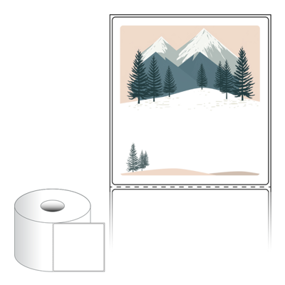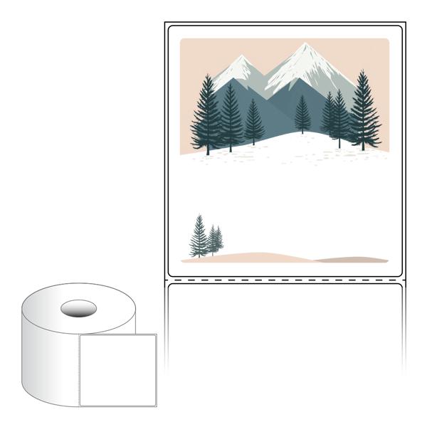 출력용 롤타입 스티커 디자인 라벨지, 규격코드: RS100107, 디자인코드: DA1582(저 잘지내요~ 겨울산에 인사), 100 x 107.067 (mm) , 지관: 40mm