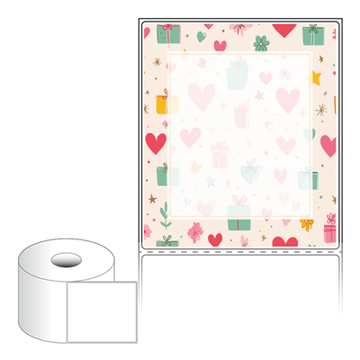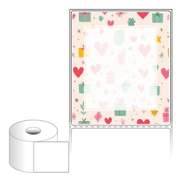 출력용 롤타입 스티커 디자인 라벨지, 규격코드: RS100116, 디자인코드: DA1393(선물 하트 포장지), 100 x 115.533 (mm) , 지관: 40mm