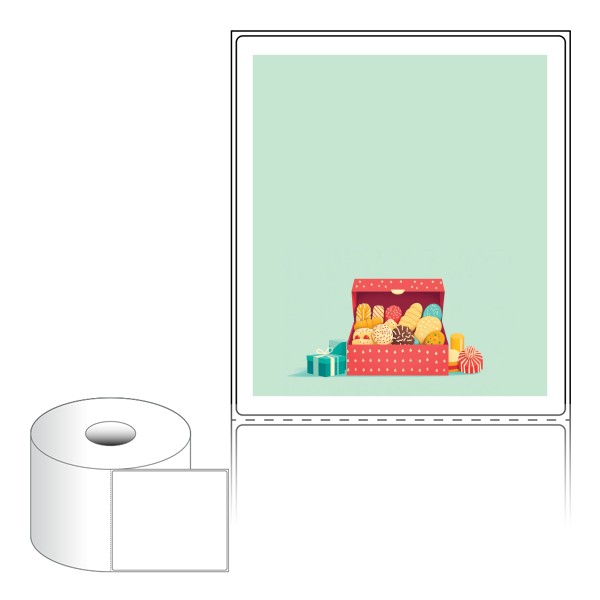 출력용 롤타입 스티커 디자인 라벨지, 규격코드: RS100116, 디자인코드: DA1478(크리스마스 아침에 선물을 받다.), 100 x 115.533 (mm) , 지관: 40mm