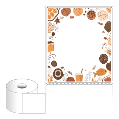 출력용 롤타입 스티커 디자인 라벨지, 규격코드: RS100116, 디자인코드: DA1515(달콤한 겨울빵 프레임), 100 x 115.533 (mm) , 지관: 40mm