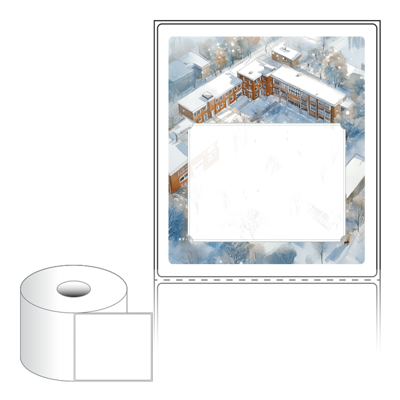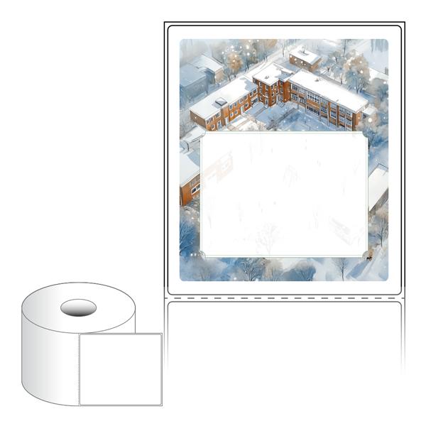 출력용 롤타입 스티커 디자인 라벨지, 규격코드: RS100116, 디자인코드: DA1535(겨울방학 학교에서 러브레터), 100 x 115.533 (mm) , 지관: 40mm