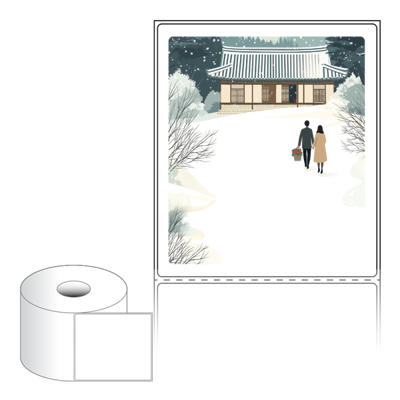 출력용 롤타입 스티커 디자인 라벨지, 규격코드: RS100116, 디자인코드: DA1580(눈내린 귀향의 따뜻한 길), 100 x 115.533 (mm) , 지관: 40mm