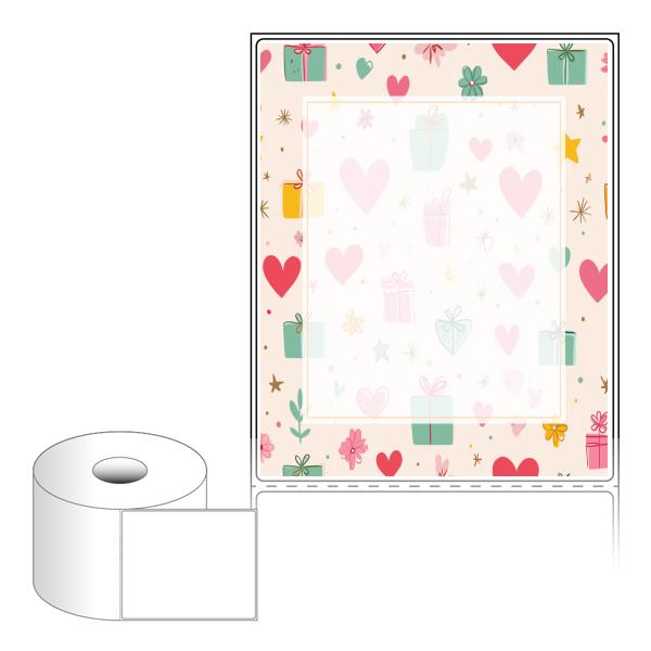 출력용 롤타입 스티커 디자인 라벨지, 규격코드: RS100124, 디자인코드: DA1393(선물 하트 포장지), 100 x 124 (mm) , 지관: 40mm