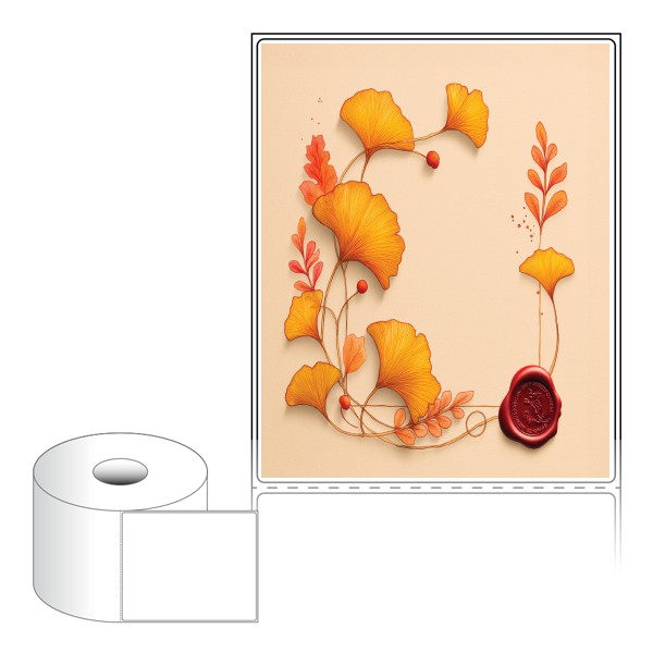 출력용 롤타입 스티커 디자인 라벨지, 규격코드: RS100124, 디자인코드: DA1437(은행잎 메모), 100 x 124 (mm) , 지관: 40mm