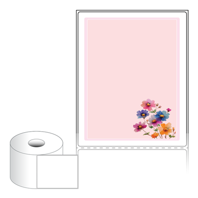 출력용 롤타입 스티커 디자인 라벨지, 규격코드: RS100124, 디자인코드: DA1451(꽃편지), 100 x 124 (mm) , 지관: 40mm