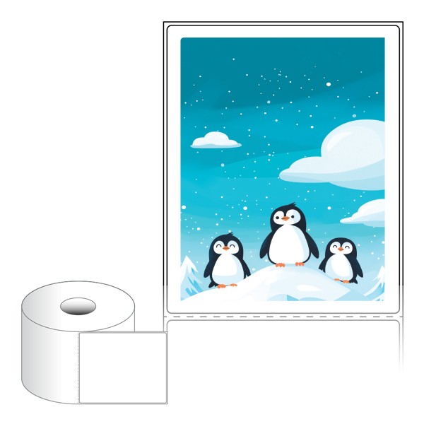 출력용 롤타입 스티커 디자인 라벨지, 규격코드: RS100124, 디자인코드: DA1468(반가워요. 귀여운 펭귄 친구들~), 100 x 124 (mm) , 지관: 40mm
