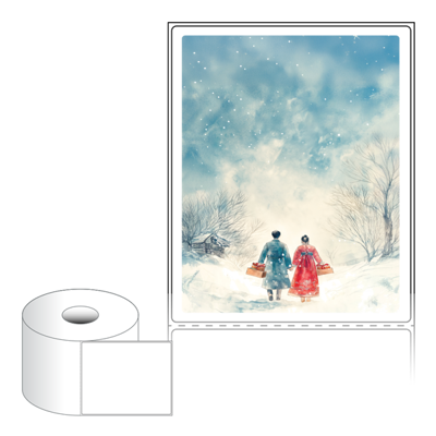 출력용 롤타입 스티커 디자인 라벨지, 규격코드: RS100124, 디자인코드: DA1520(설레는 맘을 담은 설날), 100 x 124 (mm) , 지관: 40mm