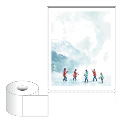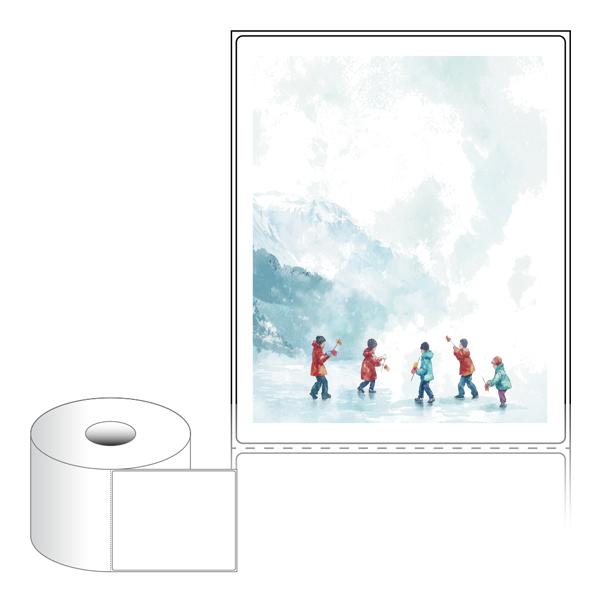 출력용 롤타입 스티커 디자인 라벨지, 규격코드: RS100124, 디자인코드: DA1522(추워도 즐거운 아이들의 겨울), 100 x 124 (mm) , 지관: 40mm