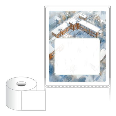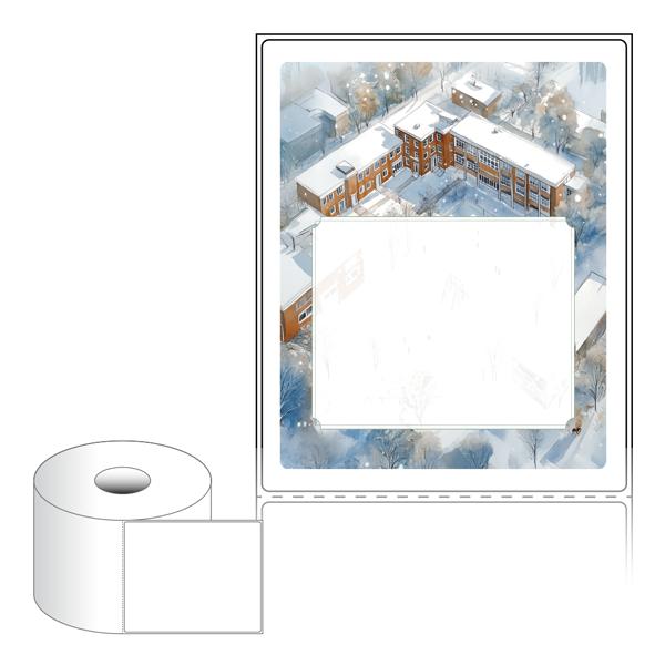 출력용 롤타입 스티커 디자인 라벨지, 규격코드: RS100124, 디자인코드: DA1535(겨울방학 학교에서 러브레터), 100 x 124 (mm) , 지관: 40mm