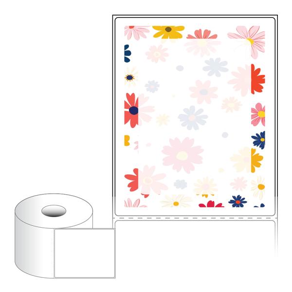 출력용 롤타입 스티커 디자인 라벨지, 규격코드: RS100124, 디자인코드: DA1558(플라워 프레임2), 100 x 124 (mm) , 지관: 40mm