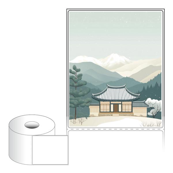 출력용 롤타입 스티커 디자인 라벨지, 규격코드: RS100124, 디자인코드: DA1578(고요한 설날의 아침), 100 x 124 (mm) , 지관: 40mm