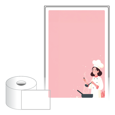 출력용 롤타입 스티커 디자인 라벨지, 규격코드: RS100149, 디자인코드: DA1434(요리교실 오픈했어요), 100 x 149.4 (mm) , 지관: 40mm