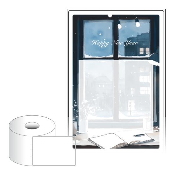 출력용 롤타입 스티커 디자인 라벨지, 규격코드: RS100149, 디자인코드: DA1503(겨울 창가에서, 해피뉴이어), 100 x 149.4 (mm) , 지관: 40mm