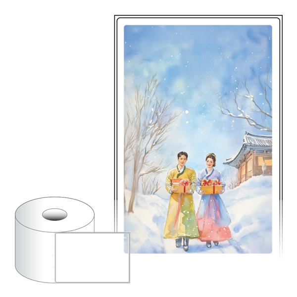 출력용 롤타입 스티커 디자인 라벨지, 규격코드: RS100149, 디자인코드: DA1519(감사의 마음을 담은 선물을 드려요), 100 x 149.4 (mm) , 지관: 40mm