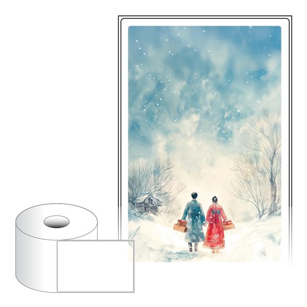 출력용 롤타입 스티커 디자인 라벨지, 규격코드: RS100149, 디자인코드: DA1520(설레는 맘을 담은 설날), 100 x 149.4 (mm) , 지관: 40mm