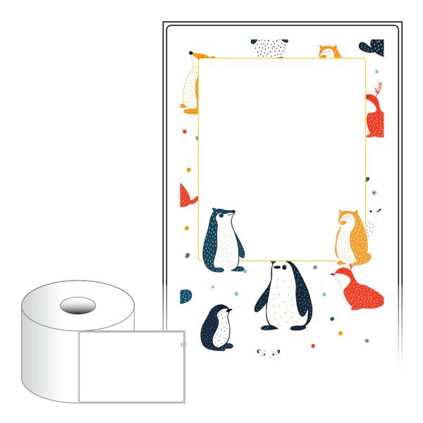 출력용 롤타입 스티커 디자인 라벨지, 규격코드: RS100149, 디자인코드: DA1564(겨울 숲 동물들의 메세지), 100 x 149.4 (mm) , 지관: 40mm