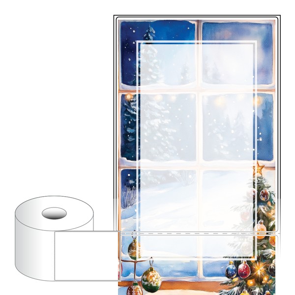 출력용 롤타입 스티커 디자인 라벨지, 규격코드: RS100200, 디자인코드: DA1466(고요한 화이트 크리스마스), 100 x 200.2 (mm) , 지관: 40mm