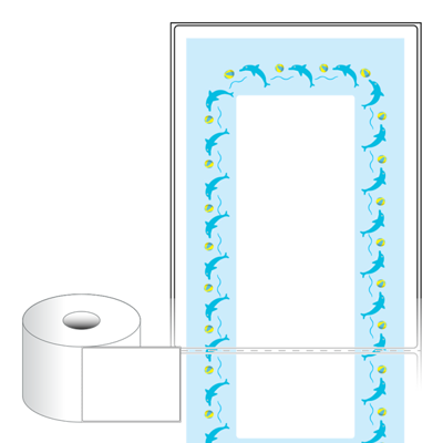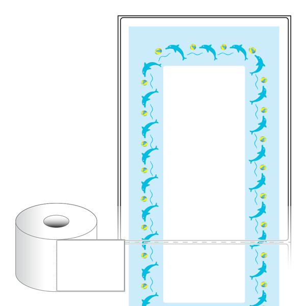 출력용 롤타입 스티커 디자인 라벨지, 규격코드: RS100200, 디자인코드: DA1823(돌고래 쇼타임), 100 x 200.2 (mm) , 지관: 40mm