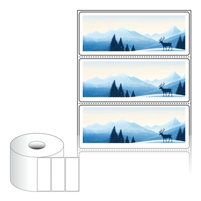 출력용 롤타입 스티커 디자인 라벨지, 규격코드: RS10039, 디자인코드: DA1473(새벽의 겨울숲, 힐링의 시간), 100 x 39.333 (mm) , 지관: 40mm