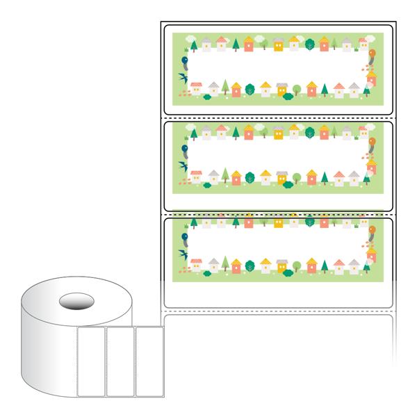 출력용 롤타입 스티커 디자인 라벨지, 규격코드: RS10039, 디자인코드: DA1644(행복한 마을의 이야기), 100 x 39.333 (mm) , 지관: 40mm