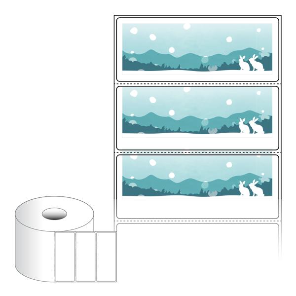 출력용 롤타입 스티커 디자인 라벨지, 규격코드: RS10039, 디자인코드: DA1716(설산 속 토끼가족), 100 x 39.333 (mm) , 지관: 40mm