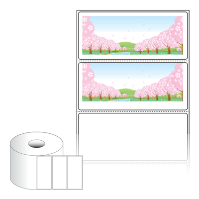 출력용 롤타입 스티커 디자인 라벨지, 규격코드: RS10044, 디자인코드: DA1854(벚꽃길), 100 x 43.567 (mm) , 지관: 40mm