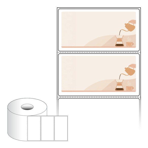 출력용 롤타입 스티커 디자인 라벨지, 규격코드: RS10052, 디자인코드: DA1413(커피와 함께 힐링타임), 100 x 52.033 (mm) , 지관: 40mm