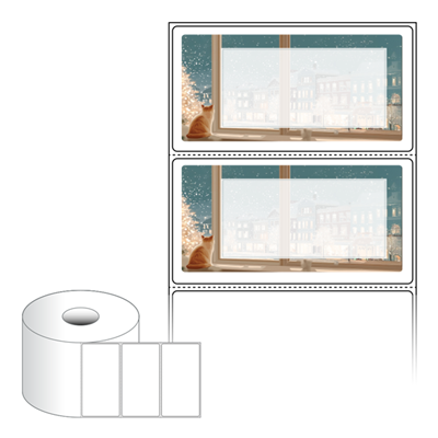 출력용 롤타입 스티커 디자인 라벨지, 규격코드: RS10052, 디자인코드: DA1493(따뜻한 방안이 좋다냥~), 100 x 52.033 (mm) , 지관: 40mm