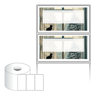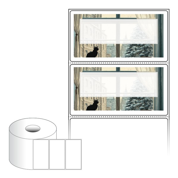 출력용 롤타입 스티커 디자인 라벨지, 규격코드: RS10052, 디자인코드: DA1494(오후엔 눈 그리고, 고양이), 100 x 52.033 (mm) , 지관: 40mm