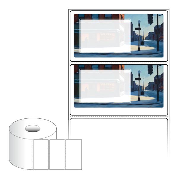 출력용 롤타입 스티커 디자인 라벨지, 규격코드: RS10052, 디자인코드: DA1540(한겨울 호퍼씨네 카페에서2), 100 x 52.033 (mm) , 지관: 40mm